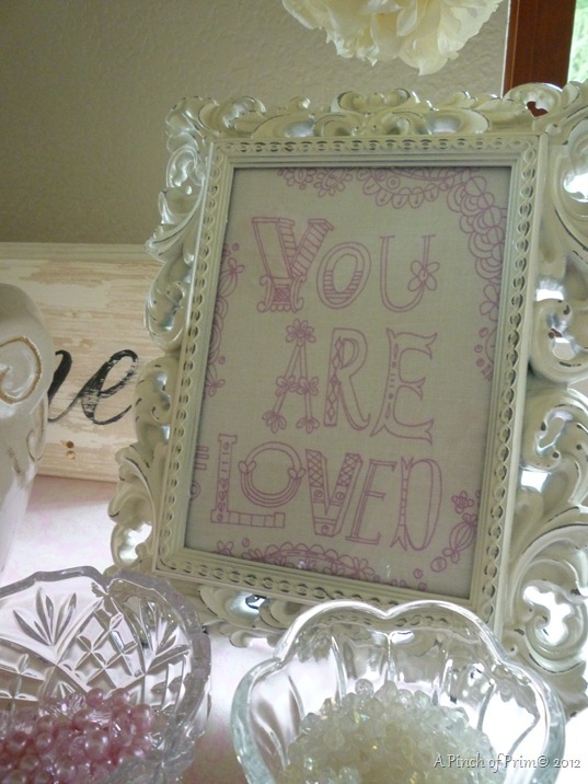 The frame that holds the sampler is a thrifting find. So are the sweet little crystal cups.